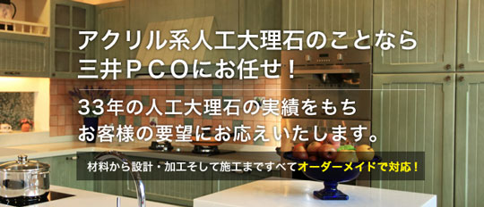 また、三井PCOでは、人工大理石の材料から設計・加工・施行まで自社工場でのオーダーメイドで行います。