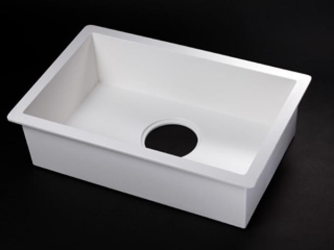 カウンター一体加工。再研磨すれば新品同様。清潔で綺麗、美しさだけでなく機能性も合わせ持った、アクリル変性ポリエステル系シンクです。カウンターとシンクの間に隙間がないため、汚れやカビがつかず、清潔さをいつまでも保つことができます。