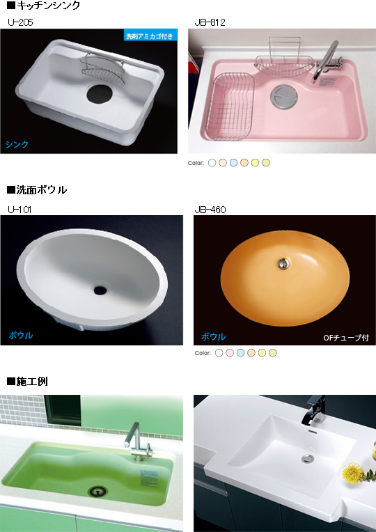 ■ 100%アクリル 人工大理石シンク&ボウル 製品紹介(一部)