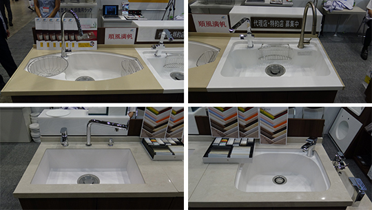 今回の展示製品の中でも、主力製品の一つである「100%アクリル系人工大理石のキッチン・シンク&洗面ボウル」。