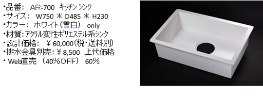 ■人工大理石キッチン シンク(賃貸マンション、オフィスに最適)
