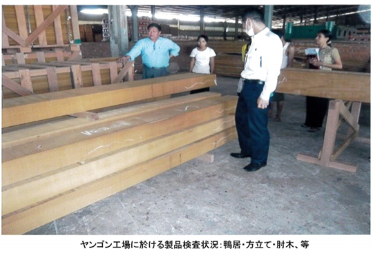 ミャンマーチーク販売(株)は祥應寺(国分寺市)より、地蔵堂新築工事の内外造部材を12m³余受注し、2月初旬から、MTIヤンゴン工場で製作していたが、4月の船積みを前に、施主・設計者・施工者等、7人により、ヤンゴン工場に於いて、製品検査を実施しました。