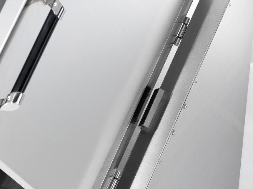 ■トルクヒンジを新採用。扉開口時90度近くになると止まります。バタンと急に閉まることがないので、安全にゴミ出し動作が出来ます。