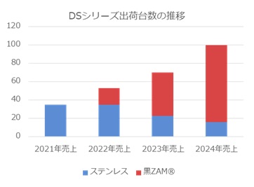 2024年の「ダスポンDSシリーズ」の売上台数は昨年の1.42倍に達し、その売上台数の84%を黒ZAM®製が占めています。
