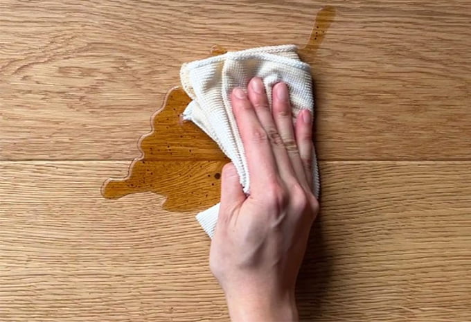 天然オークの美しい表情を損なわずに、強靭な7層コーティングで強靭な耐久性を実現。食べこぼしや粗相などがあっても、汚れが木目や実に入り込まずに簡単にお掃除可能です。