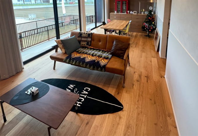 犬と暮らしながら、フロアタイルではなく本物の木の床を使用できることは大きなメリットですね。