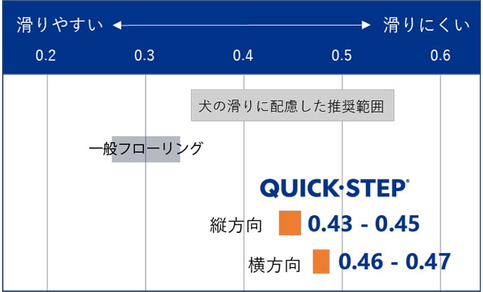 室内犬を飼う方にとって床に関する一番の悩みは「滑り」。滑りやすいフローリングでは、踏ん張ることができず、足腰や関節への負担が大きくなってしまいます。捻挫やヘルニアなど、思いもよらないけがや病気に繋がるおそれもあります。クイックステップは小型犬に配慮した滑りにくさも実現。ペットも家族の一員として快適に暮らせる空間をつくります。