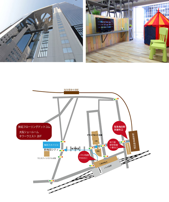 大阪・梅田ショールームは無垢フローリング専門のショールームとして西日本最大のスペースと、最多の樹種をご覧頂けるショールームです。