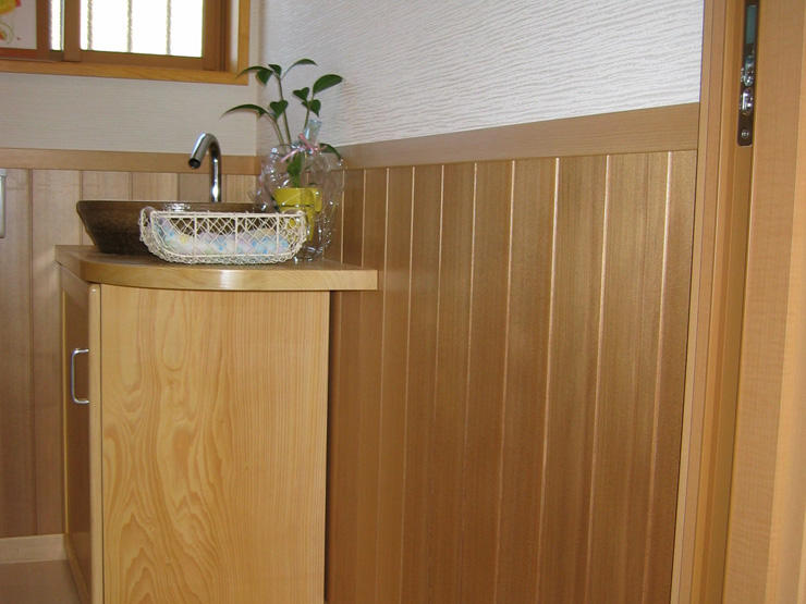 ショールームの床は人気のあるアジアンウォールナットヘリンボーンやオーク乱尺ワイルド、アメリカンチェリーフローリングなどの商品を施工しています。