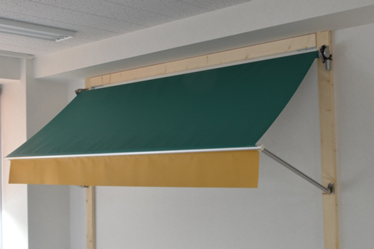 電気工事不要の、太陽電池で駆動する電動オーニング