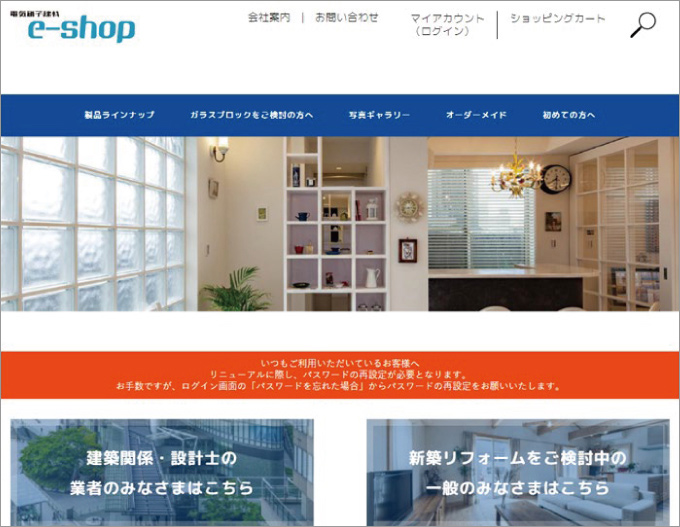 新しくなったインターネットショップ『電気硝子建材 e-shop』にご来店ください!