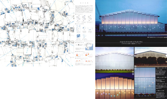 作品例を募集しています。新しい時代に向けてのデザイン性、機能性、快適性を追求した感性豊かな作品を求めています。使用されている材料は、ガラスブロック、ネオパリエ&ラピエ、ファイアライト、グラソア、ベルーナ、LXプレミアム、見えないガラス、その他の製品など日本電気硝子社製品を使用した作品といたします。