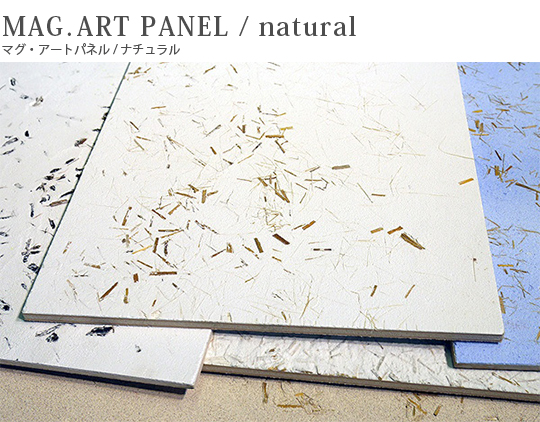素材の風合いと手作業による表情の違いが自然な雰囲気を醸し出すマグ・アートパネルは、自然の材料による人や環境への安全性だけでなく、カットや釘打ちなどが容易な施工性の高さが大きな特長です。