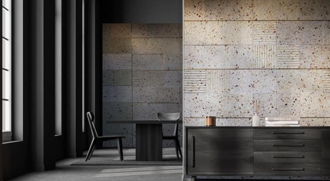 国産大谷石を再現、施工が容易な石目調不燃パネル「ストーンテックス」