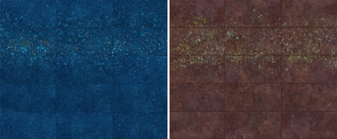 金属の酸化や鉱物の風化を思わせる、深みのある青みのテクスチャが特徴です。