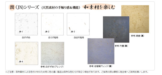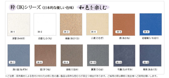 ■色粉は自然素材の石粒粉です。素材の優しい色味が「和」の空間を演出します。