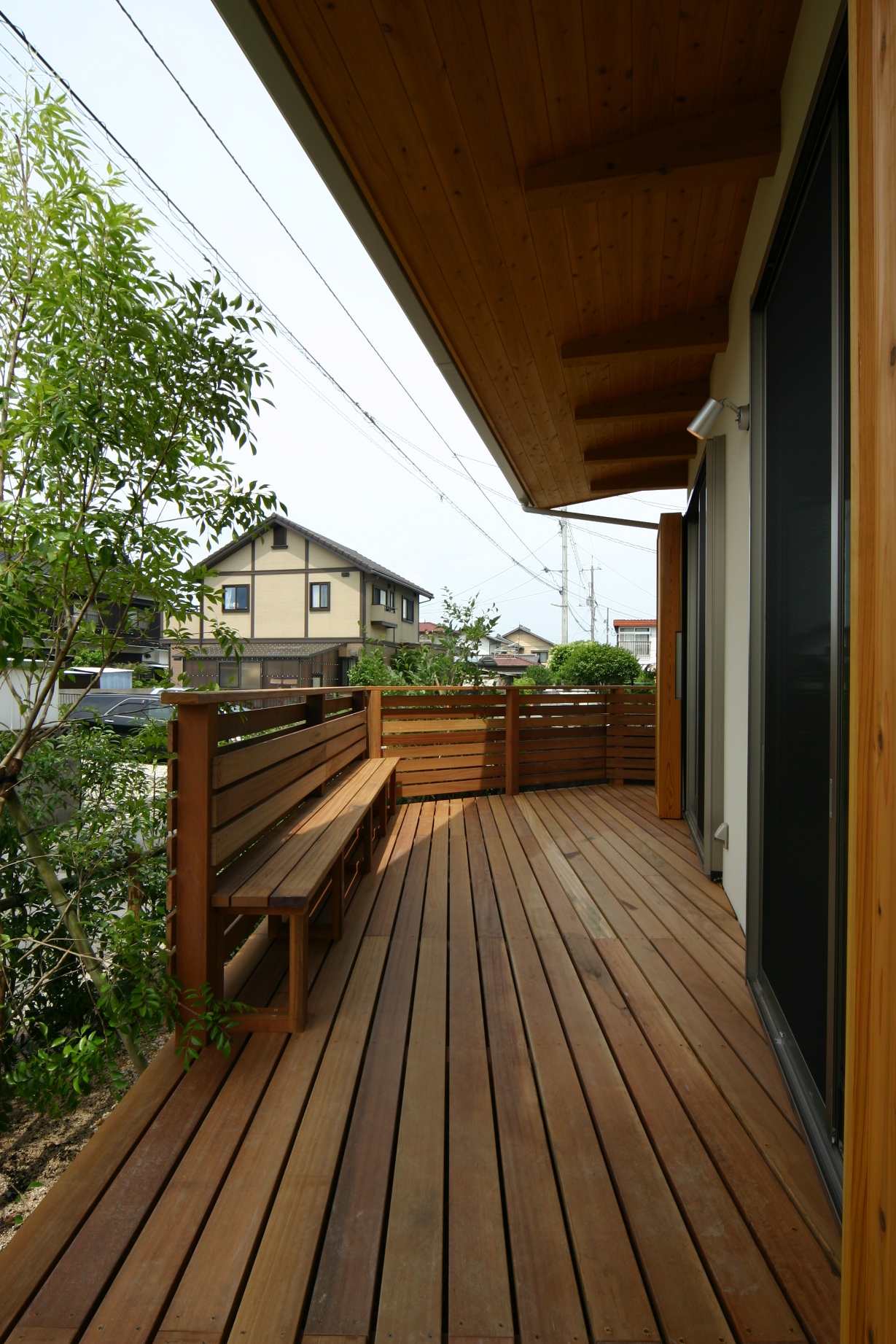 ウッドデッキは、住宅や店舗・施設などさまざまな場面で内と外をつなぐ役割を担っています。周りの環境と建物を、違和感なくより自然な印象でつなぐのは天然木です。心地よい場所には自然と人も集まります。