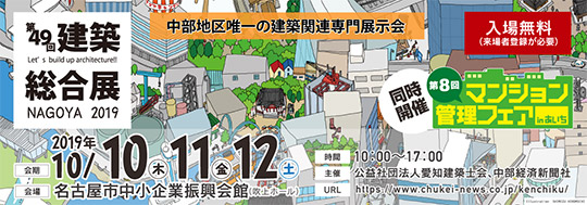 この度、10月10日(木)・11日(金)・12日(土)の3日間、名古屋市の吹上ホールにて開催されます第49回『建築総合展NAGOYA』に出展いたしますのでご案内申し上げます。