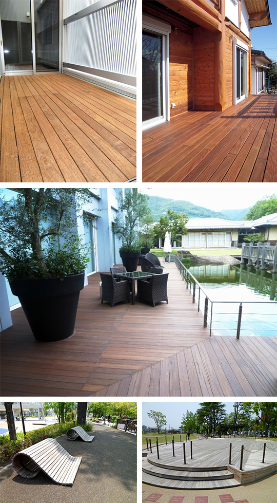 NGSハードウッドは世界各国で産出される数多くの原木の中から、耐候性・耐虫性・耐摩耗性等に優れたものを厳選し、製材・加工した木材製品です。