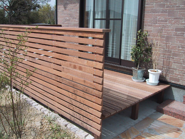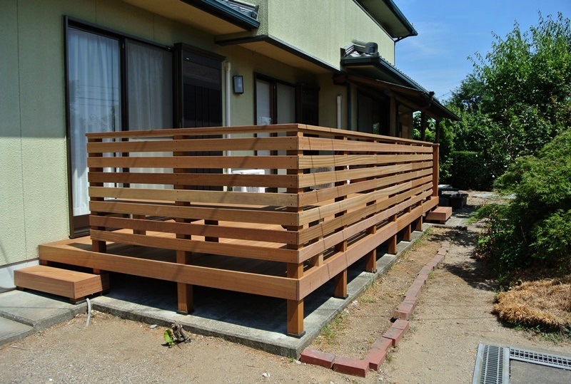 ウッドデッキ、外壁、フローリング、枠材などすべて天然木を使用しています。