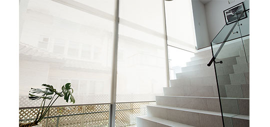 夏季の日中は、ロールスクリーンを閉じて外からの強い陽射しをカット。
