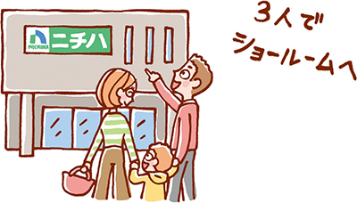 ニチハのショールームはお客様のスタイルに合わせて、「予約なしで自由に」「事前予約で詳しく」ご覧いただけます。