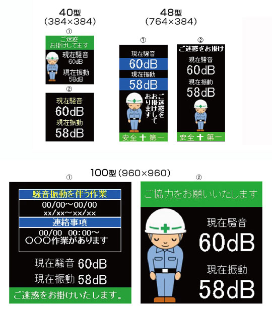 ■騒音振動計以外も表示ができるので、情報量も多く、現場状況に合わせて掲出が可能です。