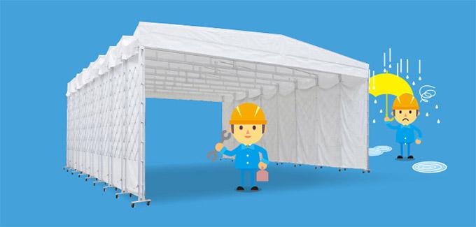 伸縮型移動開閉式テント倉庫(楽するテント)