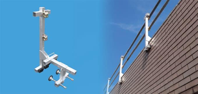 屋上等での作業時の落下防止に最適で、外周足場を作る必要がなく設置でき、工期短縮、コスト削減が可能となります。