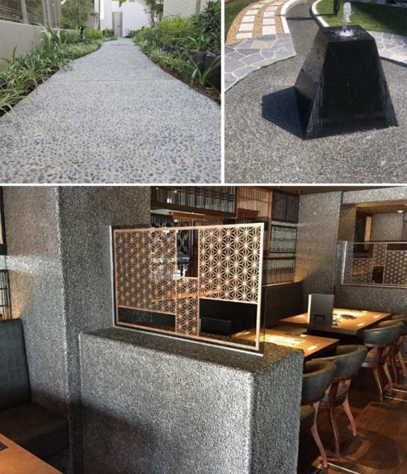 本商品では左官職人さながらの仕上げが、従来工法よりも「手軽」に実現でき、分譲マンションや個人住宅のエクステリア、商業施設や店舗のオープンスペースなどといった様々な空間を美しく彩ります。
