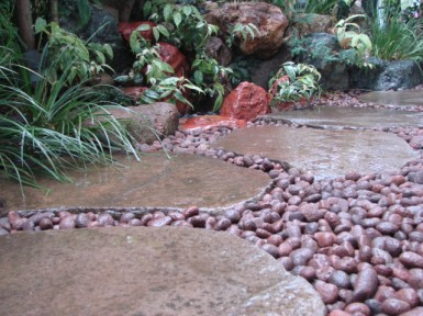 天然石ならではのアースカラーで植物の緑を際立たせます。