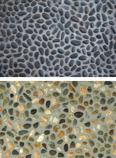 砂利は6種類、各種2サイズあり、全12パターンからお選びいただけます。また、カラーモルタルと組み合わせることによって多様なデザインにも調和し、分譲マンションや個人住宅のエクステリア、商業施設や店舗のオープンスペースなどといった様々な空間を美しく彩ります。