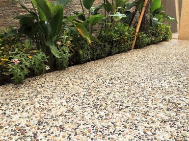 伝統的な「洗い出し」の床仕上げを手軽に実現します