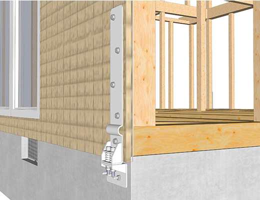 基礎、土台、通し柱をしっかり緊結し、建物を支えている柱が土台から抜けてしまう「ホゾ抜け」を防止し、大切な住まいを守る補強金具です。