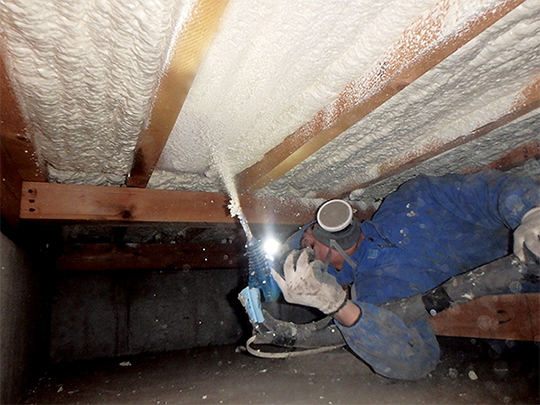冬暖かく夏涼しい家に!断熱材ハンディフォームは、床下断熱、屋根断熱、壁断熱に最適です。結露防止、吸音にも効果的で、そのうえ断熱性能は長期間持続します。お住まいになったままで短期間で施工が可能です。シックハウス症候群の心配もありません。