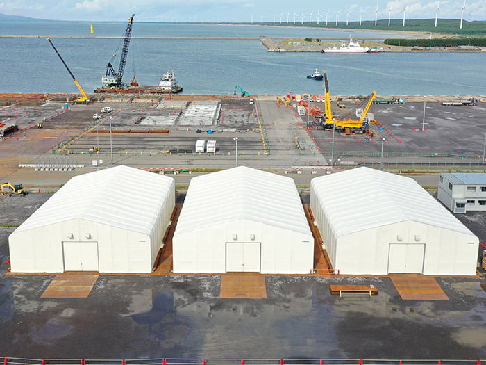 最大サイズW40mのTFSテント、作業高さH7.5mの軒高テント、長尺物の出入れ可能なスライドテント、などあらゆる工事現場の環境対策としてご利用していただいております。