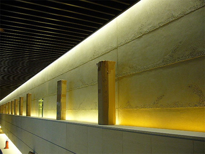 アクリル樹脂で版築風に仕上げました。ヒビ割れに強く、外部でも使用可能。