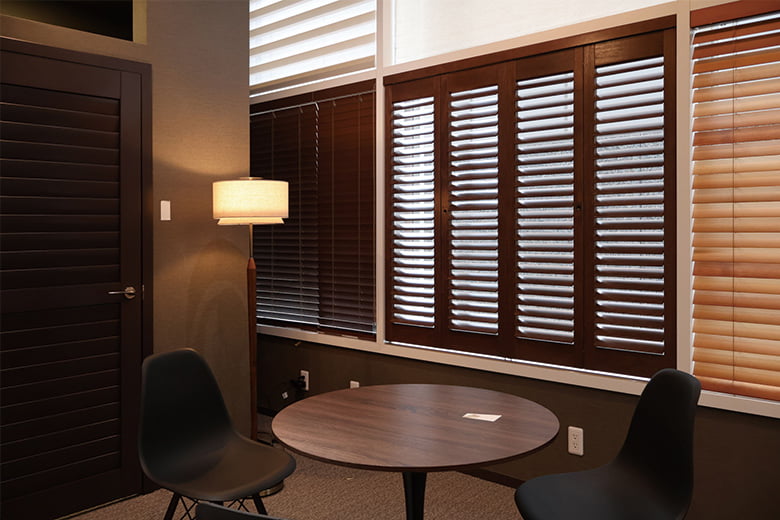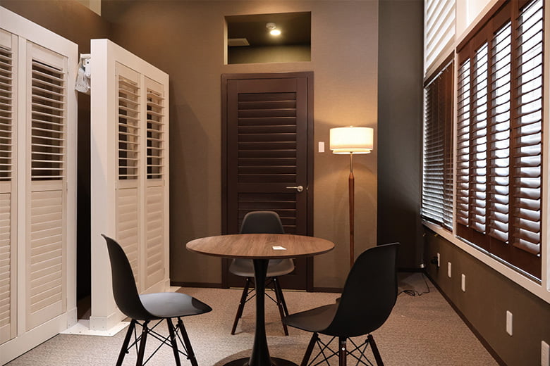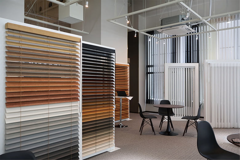 ウッドシャッターなどインターネットでは販売していない製品を展示しているほか、カラーサンプルもすべてご用意しています。