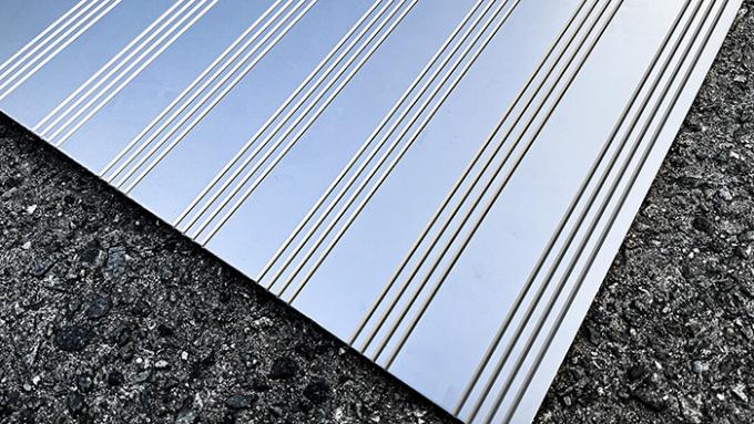 Ntripe(エヌトライプ)はアルミニウム建材で、独自のストライプ模様を表現するために開発されました。従来のヘアラインとは異なり、線の太さや深さによって表現されるストライプ模様は、エッチング技術では実現できない深いくっきりとした線が特徴です。また、平面と溝との陰影も楽しむことができます。溝の形や柄のパターンを変えることで、空間の印象を大きく変えることができます。さらに、Ntripe(エヌトライプ)はお客様の独自のデザインで製作が可能で、オリジナリティのあるデザインを実現することができます。