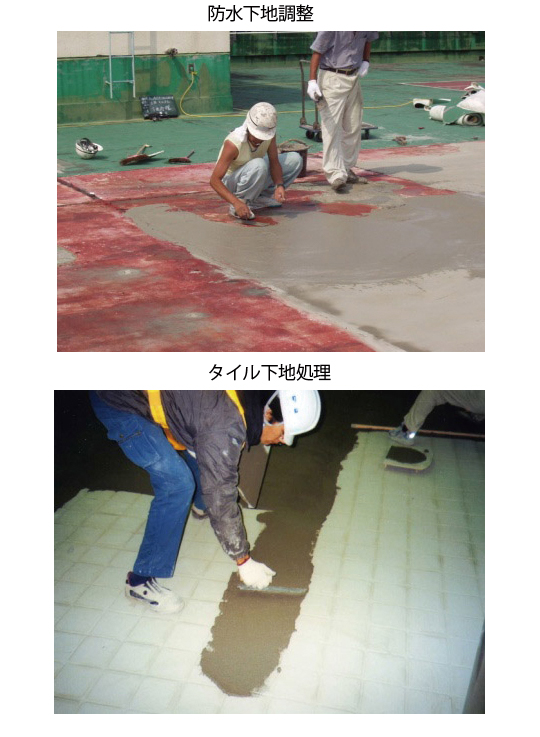 完全既調合品で、使用時に水で練混ぜるだけで高品質で安定したカチオン性ポリマーセメントフィラーとなり、各種下地に対して優れた接着耐久性を発現します。
