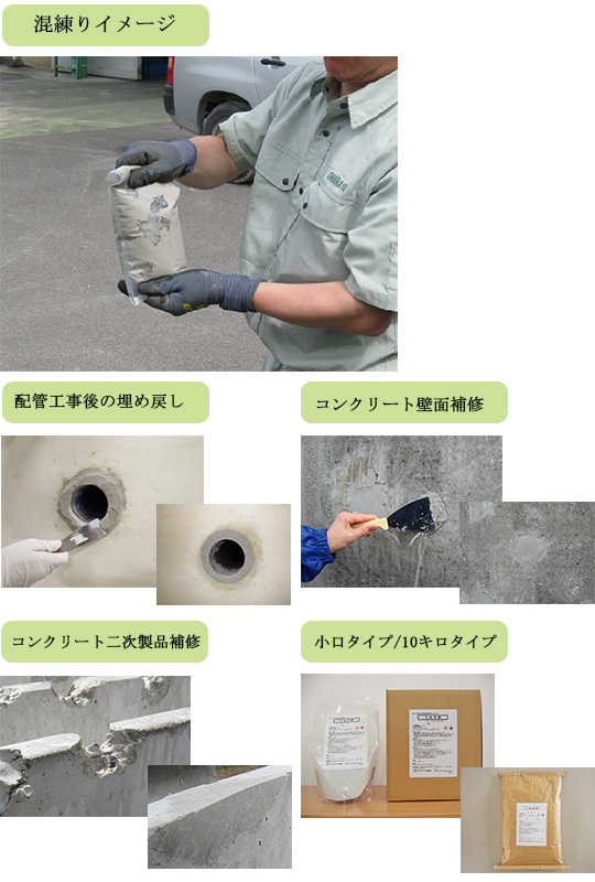 コンクリート構造物の成形・充填・簡易補修用モルタル「うめ太郎」