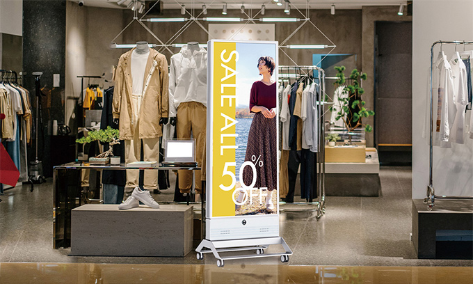 至近距離で見やすい高精細のスピーカーとキャスター付きの屋内用スタンド型LEDビジョン