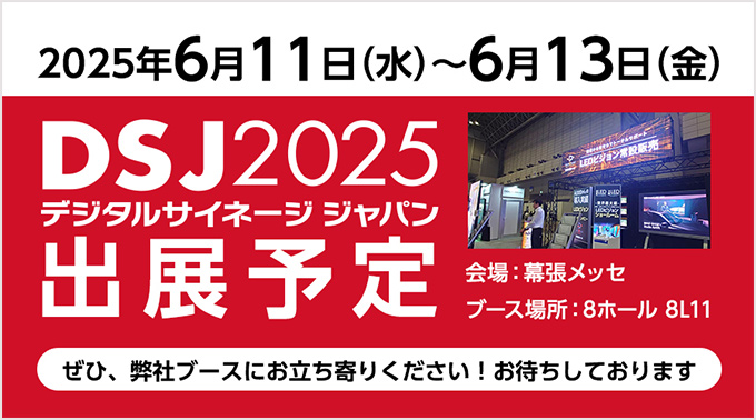 6月11日(水)~ 6月13⽇(金)に幕張メッセ にて開催されます「デジタルサイネージ ジャパン(DSJ)2025 」に出展いたします。