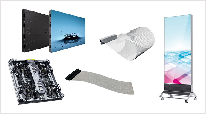 展示内容 メッシュ、屋外向け黒玉GOBタイプ 高輝度COBタイプ、レンタル専用製品 等