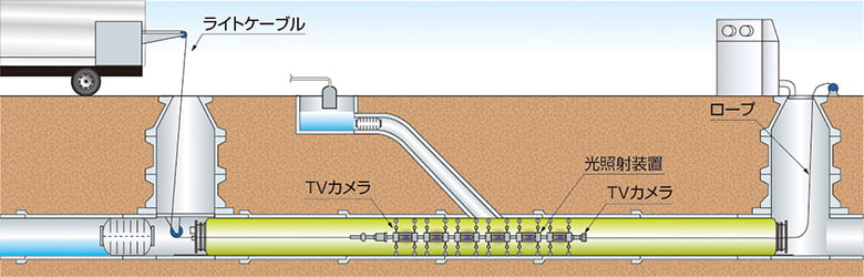 4.光硬化装置先端にTVカメラを装備し、硬化させる前に全長を出来形確認できます。