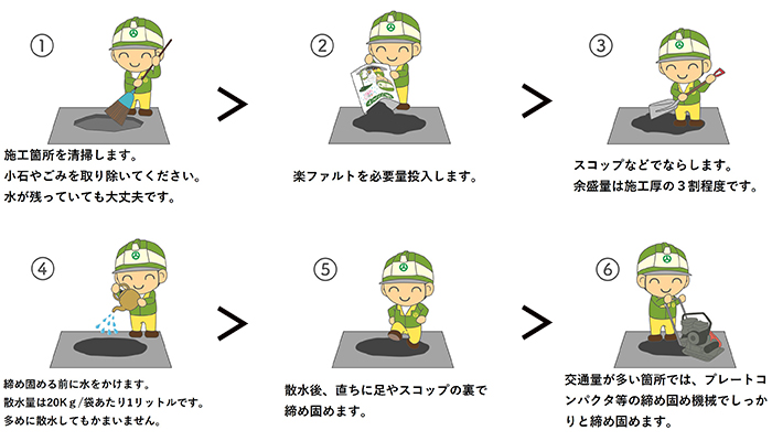 全天候型高耐久常温アスファルト合材「楽ファルト」|大林道路株式会社
