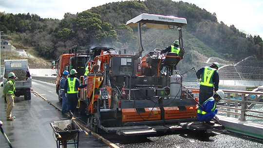配合においても硬質アスファルトを使用しないことから、材料の調達や作業効率の向上、硬質アスファルト独特の臭気を抑えることで周辺環境への負担を軽減できるという利点を有しています。
