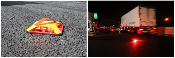 ミチシリーズは、車線規制時の道しるべとして安全確保、注意喚起に寄与します。