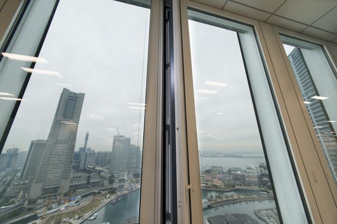 横浜市役所は、CASBEE横浜のSランク及びBELS★★★★★を取得した低炭素型市庁舎です。高層部の窓際に設けた換気パネルを開けることで、外気を取り入れることができ、建物内部を縦に貫く吹き抜け空間(エコボイド)との相乗効果で自然換気をおこなうなど、自然エネルギーを最大限に活用します。このエコボイドにおいて弊社のウィンドウオペレーター®が、開放的なアトリウムにトップライトが採用されています。