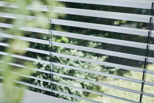 外付ブラインド「ブリイユ」は、プライバシーを守りながら通風・換気、採光ができる優れもの。ルーバーの角度を自在に調節できるので、窓を開けてもプライバシーを守りつつ自然の風や光を取り入れることが可能です。